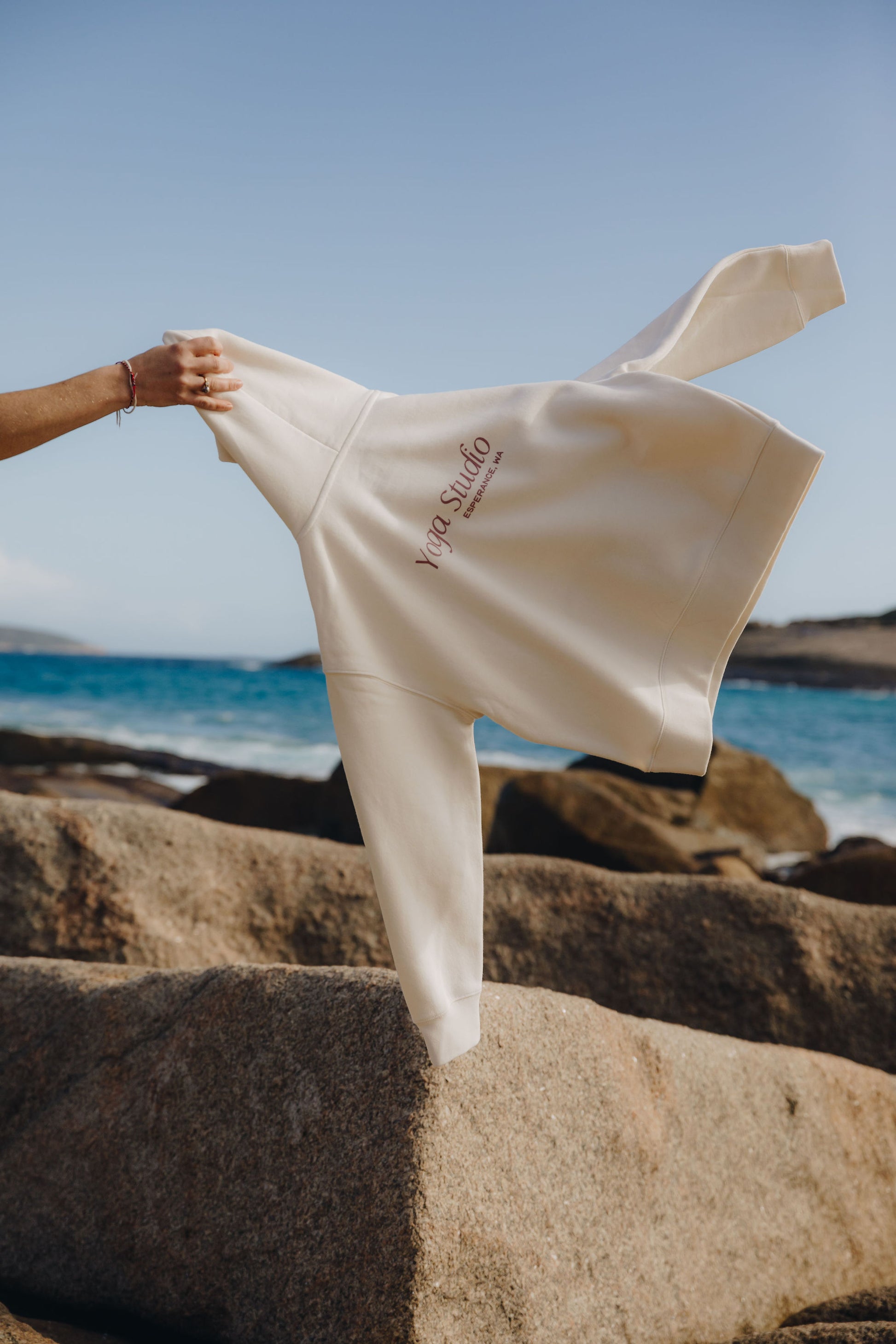In yoga Ahimsa means to be, think and do kindly. Our wish is that you say something kind to yourself, everytime you look in the mirror, as you put this jumper on. A wearable reminder that we are all doing our best. Simply putting on this buttery soft hoodie will bring coziness and kindness and what else do we really need?!